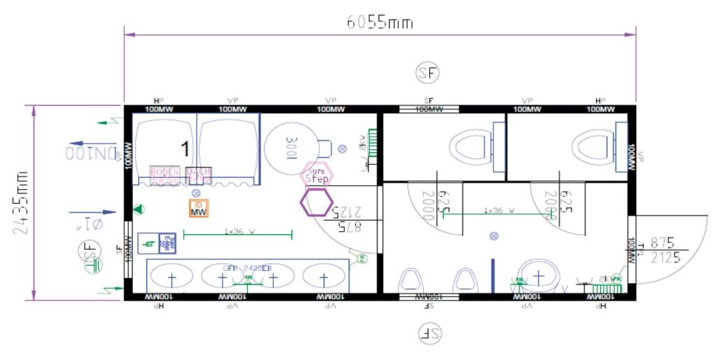 Полностью укомплектованный сантехнический блок, предназначенный для организации гигиенических зон на строительных объектах, в вахтовых поселениях и в местах проведения массовых мероприятий.